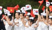 과거 서로에게 총부리를 겨눴으나 이제 미래를 함께 걸어갈 동반자로 다시 만났다. 23일 베트남 하노이 주석궁에서 한국과 베트남 정상이 만날 때 어린이들이 양국 국기를 흔들고 있다. 하노이=원대연 기자 yeon72@donga.com}