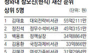 이명박 대통령과 부인 김윤옥 여사의 재산은 지난해 12월 31일 현재 57억3459만8000원이며 이 중 채무 2억3800만 원을 뺀 순재산은 54억9659만8000원으로 나타났다. 이는 종전 신고의 50억8719만6000원보다 4억940만2000원 늘어난 것이다. 이 대통령 소유의 서울 강남구 논현동 단독주택이 2억7000만 원, 김 여사 명의의 논현동 대지는 6292만8000원 올랐다. 제일CC 골프회원권과 블루헤런CC 골프회원권도 총 1850만 원 올랐다. 예금도 이 대통령 명의(1353만6000원)와 김 여사 명의(5158만8000원)를 합쳐 6512만4000원 증가해 눈길을 끌었다. 특히 김 여사는 우리은행에 2억1803만3000원의 예금을 갖고 있으며 4436만8000원이 증가했다고 신고했는데, 우리은행 명세는 1년 전 신고 때에는 없었던 것이어서 출처를 놓고 혼선을 빚기도 했다. 청와대 관계자는 “실무자의 착오로 재산신고에서 계속 누락돼온 사실이 뒤늦게 발견돼 지난해 6월 보완신고를 했다”며 “딸과 사위들이 보내온 용돈 등을 모아둔 통장이다”라고 해명했다. 청와대 참모진의 평균 재산은 16억3415만 원으로 1년 전보다 1억8435만 원 늘었다. 현직 참모들 중에는 김태효 대외전략비서관(55억2111만 원), 정진석 정무수석비서관(45억3151만 원), 백용호 정책실장(34억8864만 원) 등으로 재산이 많았다. 꼴찌는 박병옥 서민정책비서관으로 금융기관 부채만 224만9000원이었다. 이성권 시민사회비서관, 김영수 연설기록비서관, 이상휘 홍보기획비서관, 김희중 제1부속실장 등이 3억 원대의 재산으로 하위권을 형성했다. 정용관 기자 yongari@donga.com}