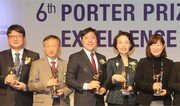 4일 서울 중구 신라호텔에서 열린 ‘제6회 CSV 포터상’ 시상식에서 수상 기업 및 기관의 대표자들이 기념촬영을 하고 있다. 왼쪽부터 김상기 국립공원공단 탐방관리이사, 양운근 국립인천대 교학부총장, 김한수 슈나이더일렉트릭코리아 본부장, 김초일 한국보건산업진흥원 기획이사, 이재령 인텔코리아 전무, 민희경 CJ나눔재단 이사(CJ제일제당 사회공헌추진단장), 이정훈 강동구청장, 류양권 한국이콜랩 대표. 김동주 기자 zoo@donga.com}