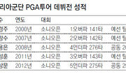 “최종라운드를 맞아 부담감이 심했다”는 경기 후의 소감처럼 아쉬운 마무리였다. 전날과는 180도 달라진 모습이었다. 올 시즌 미국 프로골프(PGA)투어에 뛰어들어 데뷔전인 소니오픈에 나선 배상문(26·캘러웨이·사진) 얘기다.배상문은 3라운드를 선두에게 4타 뒤진 공동 8위로 마치며 역전 우승의 희망까지 부풀렸다. 배상문은 지인들에게 “이런 게 바로 나”라며 강한 자신감을 드러냈다. 하지만 16일 미국 하와이 주 호놀룰루 인근의 와이알레이골프장(파70)에서 끝난 4라운드에서 버디 1개에 보기 4개로 3타를 잃어 합계 5언더파 275타로 공동 29위에 머물렀다.드라이버샷이 흔들려 페어웨이 안착률이 29%에 그쳤고 그 때문에 아이언 샷의 그린 적중률도 39%를 기록했다.대회를 앞두고 배상문은 “예선 통과나 시드권 유지 같은 목표가 아니라 우승에 도전하겠다”며 당찬 각오를 밝혔다. 준비된 신인답게 그는 그 어떤 무대보다 긴장했을 첫 대회에서 한국 선수 중 최고 성적을 거두며 가능성을 인정받았다. 코리아 군단의 맏형 최경주는 2000년 이 대회를 통해 데뷔했을 때 예선 탈락했다. 배상문은 “이번 대회를 통해 PGA투어에서도 통할 수 있다는 자신감을 얻었다. 가능한 한 많은 대회에 출전할 계획”이라고 말했다.이번 대회 우승 경쟁은 다양한 퍼터를 사용한 선수들의 경합으로 관심을 모았다. 정작 트로피는 전통적인 퍼터를 사용하는 존슨 와그너(미국)에게 돌아갔다. 콧수염으로 유명한 와그너는 13언더파로 우승했다. 롱 퍼터를 들고 나온 찰스 하웰 3세(미국)는 공동 2위(11언더파). 부삽처럼 보이는 독특한 헤드 모양을 지닌 퍼터를 쓴 맷 에브리(미국)는 전날 공동 선두에서 공동 6위(10언더파)로 대회를 마쳤다. 이 퍼터는 오라이언골프라는 업체가 만든 ‘블랙호크’라는 제품으로 직육면체 쇳덩이의 위쪽을 파낸 검정 헤드 모양을 지녀 벼루를 떠올리게 하기도 했다.최경주는 공동 38위(4언더파)로 마감했다. 신인 노승열은 공동 66위(6오버파).김종석 기자 kjs0123@donga.com}