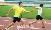 “우리 잔치에서 들러리가 아니라 당당히 주인 노릇 할 수 있게 돼 뿌듯합니다.” 열흘이 흘렀지만 흥분이 가시지 않았다. 지난달 22일 중국 저장 성 자싱에서 끝난 아시아그랑프리 1, 2차 레이스에서 23년 만에 한국 신기록을 세운 육상 남자 400m 계주팀. 39초04의 신기록 달성으로 8월 대구 세계육상선수권과 2012년 런던 올림픽 참가 기준 기록(39초20)도 넘어섰다. 1일 경기 파주공설운동장에서 귀국 후 첫 훈련에 나선 400m 계주팀의 분위기가 유난히 밝았던 이유다.○ 23년 만의 한국 신기록 비밀 23년 동안 장롱 속에 갇혀 있던 39초43의 벽을 깬 비결은 뭘까. 해답은 바통 터치와 바통 존에 있었다. 오세진 단거리 수석코치는 태국 대표팀의 ‘손목 스냅을 이용한 바통 터치’를 도입했다. 기존엔 바통을 밀어서 전달했다면 손목 스냅을 이용해 ‘주고 채가는’ 방식이다. 되도록 손가락을 펴서 바통을 잡고 바통의 끝과 끝으로 전달해 충돌 가능성을 줄이는 연습도 병행했다. 또 23∼25m의 바통 존(다음 주자가 달리면서 바통을 전달받는 구간)을 26m 이상까지 늘려 속력이 최고일 때 터치가 이뤄지게 했다. ○ 4인 4색 각 선수 특성에 맡는 역할 분담도 기록 단축의 비결이다. 첫 주자는 파워 있는 스타트가 일품인 여호수아(24·인천시청·10초33). 400m 계주는 200m와 같이 곡선주로에서 시작된다. 100m와 200m를 겸하는 여호수아는 직선·곡선에서 모두 스타트가 좋다. 박승혁 코치는 “햄스트링 부상 때문에 바통 터치 훈련을 2주 정도밖에 못 했지만 너무 잘해줬다”고 칭찬했다. 두 번째 주자는 200m 전문이자 주장인 전덕형(27·경찰대)이 맡았다. 400m 계주에서 2번 주자는 정지 상태가 아닌 스피드가 정점인 순간에 바통을 이어받는다. 출발은 느리지만 가속 구간에서의 피치가 가장 좋은 전덕형이 2번 주자로 제격인 이유다. 세 번째 주자는 단신에 하체가 짧아 곡선 피치가 좋은 김국영(20·안양시청·10초23). 앵커로 불리는 네 번째 주자는 보폭이 넓고 후반 스퍼트가 좋은 임희남(27·광주시청·10초32)의 몫이다.○ ‘38초60’의 꿈을 위하여 계주팀의 다음 목표는 대구 세계육상선수권 결선 진출이 가능한 38초60대 진입이다. 오 수석코치는 “현 400m 계주팀은 장재근이 뛰던 1988년에 뒤지지 않는 드림팀이다. 8월 대구에서 일을 내겠다”고 다짐했다.파주=유근형 기자 noel@donga.com}