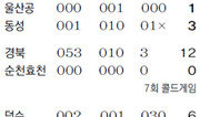 “4강에서 만날 법한 팀들인데….” 대한야구협회 관계자는 13일 경남 창원 마산구장에서 열린 제66회 황금사자기 전국고교야구대회 겸 주말리그 전반기 왕중왕전 덕수고와 서울고의 경기를 앞두고 이렇게 말했다. 덕수고는 올해 황금사자기 전에 치러진 주말리그 서울권 A리그에서 2학년 투수들인 안규현과 한주성을 앞세워 6전 전승으로 우승했다. 서울고 역시 에이스 장현식과 배재환을 앞세워 서울권 B리그에서 5승 1패로 우승했다. 각각 서울권 A리그와 B리그를 제패한 양 팀이 공교롭게 대회 초반에 맞대결하게 된 것이다. 결과는 타선의 집중력을 앞세운 덕수고의 6-2 완승이었다. 덕수고는 0-0으로 맞선 3회 1사 2루에서 유영준의 중전 안타로 선취점을 뽑았다. 계속된 1사 1루에서는 3번 타자 김경형이 우익수 키를 넘기는 1타점 3루타를 쳤다. 덕수고 김진엽은 4회 2사 후 좌익선상 2루타를 치면서 주말리그에서 0점대 평균자책(0.75)을 기록했던 서울고 에이스 장현식을 마운드에서 끌어내렸다. 덕수고는 3-1로 앞선 8회 공격에서 안타 2개와 볼넷 1개, 상대 실책 등을 묶어 3득점하며 승부에 쐐기를 박았다. 투수진에서는 깜짝 선발 김용인의 호투가 빛났다. 왼손 투수 김용인은 막강 서울고 타선을 상대로 3이닝 동안 4안타 1볼넷 무실점한 뒤 에이스 안규현에게 바통을 넘겼다. 4회 무사 1, 2루 위기에서 등판한 언더핸드 안규현은 4, 5회를 무실점으로 막고 승리투수가 됐다. 그는 6일 강릉고와의 경기에 구원 등판해 6이닝 1실점하며 승리한 데 이어 이번 대회 2승째를 거뒀다. 6회부터 등판한 한주성은 4이닝을 2실점(1자책)으로 막고 팀의 16강 진출을 이끌었다. 경북고는 순천효천고를 상대로 안타 9개와 4사구 19개를 묶어 대거 12득점하며 12-0, 7회 콜드게임 승을 거뒀다. 4번 타자 이지우는 7회 2사 만루에서 좌중간을 꿰뚫는 싹쓸이 3루타 등으로 4타점을 올렸다. 톱타자 조준영도 4타수 2안타 3타점의 맹타를 휘둘렀다. 동성고는 에이스 이현재의 완투에 힘입어 울산공고를 3-1로 꺾었다. 이현재는 최고 시속 138km의 직구에 커브와 슬라이더, 체인지업 등 다양한 변화구를 구사하며 9이닝 동안 1안타 4볼넷 13삼진 1실점으로 호투했다. 대전고는 부천고에 7-4로 역전승했다. 창원=이헌재 기자 uni@donga.com}