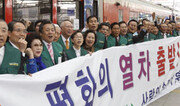 “5년 뒤에는 백두산에서 한라산까지 손에 손을 잡고 인간 띠를 만들 수 있기를 기원해 봅니다.” 신종 인플루엔자도 흐린 날씨도 통일을 염원하는 마음을 막지는 못했다. 7일 오후 경기 파주시 임진각에서 ‘사랑의손잡기운동본부’ 주최로 열린 남북화해와 국민통합을 위한 ‘사랑의 손잡기 날’ 행사. 대회장인 이윤구 전 대한적십자사 총재와 이기택 민주평화통일자문회의 수석부의장 등 각계 인사와 참가 시민 1500명은 임진각 평화누리에서 통일에 대한 뜨거운 염원을 노래했다. 서울역에서 참가자들이 임진각까지 ‘평화의 열차’를 타고 출발하면서 시작된 이날 행사는 임진각 평화누리에서 축시 낭독, 대회사, 격려사, 축사, 탈북자 대표가 북의 가족에게 보내는 편지 낭독, 평양통일예술단 공연, 선언문 낭독으로 이어졌다. 이 전 총재는 대회사에서 “남북의 화해와 민족의 통일을 기원하는 한겨레의 사랑으로 뜨거운 손을 맞잡고 분단의 벽을 헐어 새 아침을 깨우는 운동을 시작하려 한다”며 “사랑의 손잡기 운동이 전국으로 퍼져 가까운 장래에 북녘의 땅에도 마음과 마음으로 전해지길 기대한다”고 밝혔다. “영어를 열심히 하던 우리 아이가 국제중학교에 합격했는데 이 기쁜 소식을 함께 나누지도 못하네요.” ‘탈북자 박사 1호’인 이애란 씨(45)가 북에 있는 가족들을 향해 편지를 낭독할 때는 잠시 분위기가 숙연해지기도 했다. 평소 통일 문제에 관심을 기울여 오다 이번 행사에 참가했다는 오종림 할아버지(79)는 “통일을 바라는 사람들의 마음이 내 생각보다 뜨거운 것 같아 흐뭇하다”며 “남북화합에 대해 고민해보는 자리가 종종 마련되어야 할 것”이라고 강조했다. 1시간 반 가까이 진행된 이번 행사는 민족통일을 향해 ‘사랑의 손’을 잡고 함께 나가기를 촉구하는 선언문 낭독과 평화의 종 타종, 만세 삼창으로 마무리됐다. 파주=장윤정 기자 yunjung@donga.com}