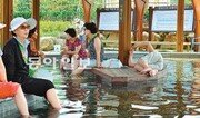 강원 속초시 노학동에 조성된 척산 족욕공원이 시민과 관광객들에게 큰 인기를 얻고 있다. 21일 속초시에 따르면 족욕공원 이용객은 평일 150∼200명, 주말 500∼1000명으로 지난달 19일 개장 이후 1개월 만에 1만여 명이 방문했다. 당초 시민들이 주로 이용할 것으로 예상됐지만 관광객이 전체 이용객의 40%가량 될 정도로 높은 비중을 차지하고 있다. 족욕공원은 척산온천휴양촌이 무상 기증한 온천수를 사용해 이용객들이 무료로 발을 담그고 휴식을 취할 수 있도록 만들었다. 야외 족욕 체험 시설 외에도 온천 홍보관, 휴게시설, 물품보관함, 특산물판매장 등이 있다. 특히 족욕공원은 징검다리∼자생식물원∼야생화길∼종합운동장을 순환하는 설악누리길(5.96km)의 출발지점이어서 이와 연계한 체험공간으로도 활용되고 있다. 속초시는 앞으로 족욕 시설에 비가림막을 설치해 우천 시에도 이용할 수 있도록 할 방침이다.이인모 기자 imlee@donga.com}