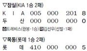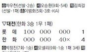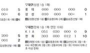 한화 이대수는 2002년 프로에 입단한 뒤 지난해까지 통산 홈런이 17개에 불과했다. 지난해는 타율 0.232에 7홈런 37타점으로 평범한 성적. 그런 그가 6일 대전에서 극적인 드라마를 썼다. KIA에 9-9로 맞선 10회말. 이대수가 선두타자로 타석에 섰다. KIA 마무리 유동훈의 2구째 커브가 약간 높게 들어왔다. 이대수는 이를 그대로 끌어당겼다. 공은 큰 포물선을 그리며 왼쪽 담장을 넘어갔다. 이대수는 자신의 첫 끝내기 대포로 팀의 10-9 승리를 이끌었다. 2004년 프로에 데뷔한 한화 투수 정재원은 10회에 6번째 투수로 등판해 1이닝 동안 삼진 1개 등 무실점으로 막고 마수걸이 승리를 챙겼다. 이날 경기는 대포로 시작해 대포로 끝났다. KIA는 2-3으로 뒤진 2회초 1사 2, 3루에서 김선빈의 역전 3점 홈런으로 5-3을 만들었다. 한화 최진행은 3-6으로 뒤진 3회말 무사 1, 2루에서 가운데 담장을 넘기는 동점 3점 홈런을 날려 승부를 다시 원점으로 돌렸다. 한화는 9회말 공격을 앞두고 7-9로 뒤져 패색이 짙었다. 그러나 한화는 이때부터 반전의 드라마를 쓰기 시작했다. 선두타자 고동진이 왼쪽 2루타를 치고 나간 뒤 강동우의 우중간 담장을 넘기는 2점 홈런으로 극적인 동점을 만들었다. 그리고 10회 이대수의 끝내기 홈런으로 드라마를 마무리했다. 목동에선 지난해 넥센에서 두산으로 이적한 왼손투수 이현승이 이적 후 첫 선발승을 거뒀다. 그는 최고 시속 145km의 직구와 슬라이더를 앞세워 5와 3분의 1이닝 동안 홈런 1방을 포함해 5피안타 1실점으로 호투하며 5-2 승리를 이끌었다. 두산 타선은 상대 실책을 적극 활용했다. 1회 이종욱 정수빈의 연속 안타와 상대 선발 김성현의 폭투로 만든 무사 2, 3루에서 김현수의 희생타와 김동주의 적시타로 2점을 얻었다. 2-1로 앞선 3회에는 2사 후 김동주가 우중간 2루타에 이어 포수 허준이 공을 빠뜨린 뒤 김성현의 보크로 추가 득점했다. 7회에는 2사 1루에서 정수빈의 2루타와 김현수의 가운데 안타로 2점을 추가하며 승부에 쐐기를 박았다. 두산 마무리 임태훈은 5-1로 앞선 9회 무사 1, 2루에 등판해 1실점했지만 승리를 지키며 2세이브째를 따냈다. 삼성 윤성환은 대구에서 ‘삼성 천적’ 롯데 송승준과의 투수전 끝에 1-0 승리를 이끌었다. 송승준은 삼성을 상대로 2008년 7월 3일부터 9연승을 달렸고 지난해에도 자신의 14승 가운데 3승을 삼성으로부터 따냈다. 반면 삼성 윤성환은 지난해 롯데에 4번 선발 등판했지만 승패 없이 평균자책 7.20으로 부진했다. 그러나 윤성환은 이날 6이닝 동안 삼진 4개를 포함해 5안타 무실점으로 호투하며 첫 승을 신고했다. 이어 권오준(7회)-오승환(9회) 철벽 계투조가 롯데 타선을 무실점으로 막았다. 송승준도 7이닝 동안 삼진 9개를 잡으며 4안타 1실점으로 잘 던졌지만 타선이 터지지 않아 패전의 멍에를 썼다. 삼성은 2회 박석민이 오른쪽 2루타를 날린 데 이어 가코의 1타점 적시타로 홈을 밟으며 귀중한 결승점을 올렸다. LG는 잠실에서 SK를 6-5로 꺾고 전날 역전패를 설욕했다. 황태훈 기자 beetlez@donga.com유근형 기자 noel@donga.com}