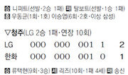 시범경기 막판 LG 김기태 감독이 정성훈을 4번 타자로 낙점하자 많은 사람이 고개를 갸웃했다. 정성훈은 일반적인 의미의 4번 타자가 아니기 때문이다. 호리호리한 체격의 3루수인 그는 한 시즌 최다 홈런이 2005년 현대 시절 기록한 17개에 불과하다. 지난해에도 10홈런을 쳤을 뿐이다. 거포라기보다는 중장거리 타자다. 김 감독이 그런 정성훈을 4번 타자에 포진시킨 것은 왼손 타자가 많은 팀 사정을 고려해서다. 그나마 오른손 거포였던 조인성이 자유계약선수(FA) 자격으로 SK로 이적한 영향도 컸다. 김 감독은 “홈런보다는 득점 찬스에서 한 방을 쳐 줄 해결사의 역할을 기대한다”고 했다. 현역 시절 ‘해결사’로 한 시대를 풍미했던 한대화 한화 감독과 같은 3루수가 되었으면 좋겠다는 뜻을 내비쳤다. 그랬던 정성훈이 연 이틀 한 감독을 울렸다. 18일 한화와의 경기에서 0-1로 뒤진 7회 박찬호를 상대로 역전 투런 결승 홈런을 터뜨렸던 정성훈은 19일 경기에서 0-0으로 팽팽하던 9회초 류현진을 상대로 선제 솔로 홈런을 터뜨렸다. 15일 KIA전 이후 4경기 연속 홈런 행진이다. 정성훈의 홈런이 없었다면 이날 승리는 한화의 차지가 될 뻔했다. 곧 이은 9회말 선두 타자로 나선 장성호가 류택현을 상대로 솔로 홈런을 터뜨렸기 때문이다. 승부는 연장 승부 끝에 극적으로 갈렸다. LG는 연장 10회초 2사 후 양영동과 이대형의 연속 안타로 만든 1, 3루 찬스에서 대타 이병규가 좌익수와 중견수 사이에 떨어지는 행운의 안타를 쳐 2-1을 만들었다. 한화 역시 10회말 공격 2사 2루에서 강동우가 좌익수 앞 안타를 쳤으나 2루 주자 하주석에 홈에서 간발의 차로 아웃되며 동점을 만드는 데 실패했다. 한화 선발 류현진은 이날 9이닝 1실점으로 호투하고도 승리와 인연을 맺지 못했다. 이헌재 기자 uni@donga.com}