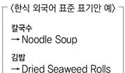 칼국수의 영어 표기가 ‘Knife-cut Noodles’? 김밥의 영어 표기가 ‘Kim bap’? 이제는 이런 고민을 덜게 됐다. 칼국수는 ‘Noodle Soup’, 김밥은 ‘Dried Seaweed Rolls(Korean Rolls)’로 한식 음식점의 영문 메뉴 표기가 통일된다. 음식점마다 제각각이어서 외국인들이 느끼는 불편을 해소하고, 한식을 세계에 제대로 알리기 위한 것이다. 농림수산식품부는 이같이 대표적인 한식 메뉴 124개에 대한 외국어 표준 표기안을 마련했다고 5일 밝혔다. 이번에 마련된 표기안은 영어, 일본어, 중국어 등 3개 언어다. 표기안에 따르면 한정식은 영문으로 ‘Traditional Korean Set Menus’라고 표기한다. 밥류 가운데 김치볶음밥은 ‘Kimchi Fried Rice’로, 돌솥비빔밥은 ‘Sizzling Stone Pot Bibimbap’이라고 쓴다. 갈비탕은 ‘Short Rib Soup’로, 곰탕은 ‘Thick Beef Bone Soup’로 표기한다. 찌개류는 보통 ‘stew’를 덧붙여 된장찌개는 ‘Soybean Paste Stew’로, 부대찌개는 ‘Spicy Sausage Stew’로 쓴다. 곱창전골은 ‘Spicy Beef Tripe Hot Pot’, 족발은 ‘Pigs' Trotters’다. 최근 세계화 메뉴로 주목받는 떡볶이는 ‘Stir-Fried Rice Cake’라고 표기한다. 이 외에도 영문 표기가 마련된 메뉴는 잣죽, 간장게장 등 다양하다. 표기안은 문화체육관광부와 외교통상부, 한국관광공사, 국제교류재단 등 관련 기관이 협력해 국립국어원에 로마자 표기에 대해 자문하고 음식, 조리, 외국어 전문가로 구성된 위원회의 검토를 거쳐 마련됐다. 농식품부는 이 표기안을 사용해 음식 사진, 주재료, 조리법, 곁들여 먹는 국이나 양념장 등을 함께 소개한 책자를 만들어 국내외 한식당에 보급할 계획이다. 식품정보 포털(www.foodinkorea.co.kr)에 e북 형태로도 실린다. 농식품부 관계자는 “프랑스어와 스페인어판도 마련하는 등 표기안을 확대할 방침”이라고 말했다.조은아 기자 achim@donga.com}