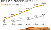매년 쌀은 남아돌지만 한국의 식량자급률은 지속적으로 떨어지고 있는 것으로 나타났다. 25일 농림수산식품부에 따르면 식량자급률의 대표적 기준인 곡물자급률은 지난해 26.2%로 사상 최저치로 떨어졌다. 2007년의 27.2%보다 1%포인트 줄어든 것으로 1980년의 56.0%에 비하면 반 토막 밑으로 떨어졌다. 식량의 대외의존도가 높아지면서 ‘식량안보’에 대한 우려도 커지고 있다. 최근 국정감사에선 식량자급률을 끌어올리기 위한 정부의 노력이 미흡하다는 비판도 제기됐다. 곡물자급률의 하락은 기본적으로 한국 국민의 식생활 변화를 반영한다. 쌀 중심의 식습관이 밀 등 다른 곡물 중심의 식습관으로 바뀐 것. 빵, 파스타 등 밀 식품과 육류 소비가 늘면서 국내 생산기반이 취약한 밀과 가축에게 먹이는 사료용 작물 수입이 늘었다. 문제는 변하는 식습관에 맞춰 식량정책을 민첩하게 펼치지 못한 것이라고 전문가들은 지적한다. 식량생산 지원 정책이 지나치게 쌀 중심적이라는 얘기다. 농가의 안정적인 작물 생산을 위해 지급하는 직불금은 예외적인 경우를 제외하곤 쌀 농가에만 지급된다. 최근 밭 직불제 시행 방안이 논의되고는 있지만 아직 검토 단계에 불과하다. 최지현 한국농촌경제연구원 선임연구위원은 “사료작물, 밀의 자급기반을 확대하기 위해 생산기반을 구축해야 한다”고 말했다. 영농의 대형화가 힘들다는 점도 문제로 꼽힌다. 1인당 경지면적이 한국은 0.04ha로 미국(0.57ha), 프랑스(0.32ha), 독일(0.15ha) 등에 비해 좁다. 정부가 2015년 곡물자급률 목표를 25%로 지나치게 낮게 잡았다는 지적도 나오고 있다. 농식품부 관계자는 “실무진에서 목표치 수정 여부를 검토할 것”이라고 말했다.조은아 기자 achim@donga.com곡물자급률쌀, 보리쌀, 콩, 사료용 작물 등 각종 곡물의 국내 소비량을 국내 생산량이 얼마나 충족하느냐의 비율을 뜻한다. 곡물별 자급률 가운데 밀과 옥수수의 자급률이 특히 심각한 상태다. 2008년 쌀 자급률은 93.9%인 반면 밀은 0.4%, 옥수수는 0.9%였다. 쌀의 자급률도 2003년에 이어 2006년에 다시 100% 아래로 떨어진 뒤 매년 감소세를 보이고 있다. 곡물자급률 외의 식량자급률 품목으로는 채소류, 과일류, 육류 등이 있다.}