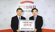 현대중공업은 집중호우로 어려움을 겪고 있는 수재민들을 위해 31일 전국재해구호협회에 성금 30억 원을 전달했다. 이에 앞서 현대중공업은 지난달 28일에도 서울 우면산 일대의 산사태 피해 복구에 굴착기, 덤프트럭 등 구호용 건설장비를 지원했다. 이재성 현대중공업 사장은 “이번 성금이 수재민들에게 조금이나마 도움이 되길 바라며 하루빨리 피해가 복귀되기를 기원한다”고 말했다.한상준 기자 alwaysj@donga.com}