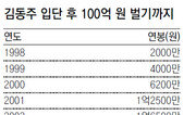 야구만 잘하면 ‘돈 방석’에 앉을 수 있다는 건 여러 선수가 보여줬다. 박찬호(한화)는 메이저리그 시절인 2001년 말 LA 다저스에서 텍사스로 이적하며 5년간 6500만 달러(약 751억 원) 계약서에 사인했다. 이승엽(삼성)은 2007년부터 일본 프로야구 요미우리와 4년간 30억 엔(약 450억 원)에 계약했다. 최근엔 이대호가 롯데의 4년 100억 원 제안을 뿌리치고 2년간 7억6000만 엔(약 114억 원)에 일본 오릭스로 이적했다. 이들 같은 해외파에는 미치지 못하지만 국내 프로야구에서만 뛰면서 100억 원을 벌어들이는 선수가 있다. 두산의 ‘두목 곰’ 김동주(36·사진)가 주인공이다. 두산은 지난 시즌 직후 자유계약선수(FA) 자격을 재취득한 김동주와 3년간 총액 32억 원(계약금 5억 원, 연봉 7억 원, 옵션 2억 원)에 2일 계약했다. 계약 기간을 채우기만 하면 김동주는 순수 한국 프로야구 선수로는 처음으로 누적 수입 100억 원을 돌파한다. 그는 1998년 OB(두산의 전신)에 입단할 때부터 될 성 부른 떡잎이었다. 입단 계약금으로만 4억5000만 원을 받았다. 이후 곧바로 팀의 중심타선 자리를 꿰찼고 4년째인 2001년 억대 연봉(1억2500만 원) 대열에 합류했다. 매년 꾸준히 연봉이 올랐지만 결정적으로 큰돈을 만진 건 FA가 되고 나서부터다. 2007시즌 후 FA 자격을 얻은 김동주는 해외 진출과 국내 잔류 사이에서 고민하다가 막판에 두산에 남기로 했다. 4년간 계약금으로만 16억 원을 받았고 매년 연봉과 옵션을 합쳐 9억 원씩을 벌었다. 지난해까지 4년을 꼬박 채워 FA 자격을 다시 얻었고 이번에 다시 30억 원대 대박 계약을 성사시켰다. 이번 계약으로 김동주는 17년간 두산에서만 뛰게 됐다. 그보다 한 팀에서 더 오래 뛴 선수는 송진우(21년)와 장종훈(19년·이상 한화), 이종열(18년·LG) 등 3명뿐이다. 김동주는 “두산맨으로 남게 돼 기쁘다. 이번 3년의 계약을 마지막으로 생각하고 유종의 미를 거두기 위해 최선을 다하겠다”고 말했다.이헌재 기자 uni@donga.com}