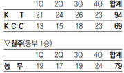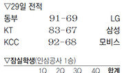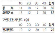 “한 명만 확실히 잡으면 된다.” 시즌 개막 후 패배를 모르는 동부 강동희 감독의 한 가지 전술은 명확했다. 상대 핵심 선수를 철저하게 봉쇄하는 것이다. 동부는 경기당 평균 30점 이상을 터뜨리던 오리온스 크리스 윌리엄스를 7점으로 묶었다. 모비스와의 경기에서는 25점 안팎을 넣던 주득점원 말콤 토마스를 11점으로 막았다. 동부 수비의 핵심은 김주성(205cm), 윤호영(197cm), 로드 벤슨(207cm)의 장신 트리플 타워가 효율적인 번갈아 막기로 골밑을 봉쇄하는 데 있다. 25일 원주에서 열린 SK와의 경기에서 강 감독의 표적은 평균 30점을 터뜨리고 있는 알렉산더 존슨이었다. 경기 전 강 감독은 “존슨만 한 용병이 없어 보인다”며 경계심을 드러냈다. 동부는 김주성, 윤호영, 벤슨을 앞세운 강력한 수비로 존슨에게 20점만 내주며 79-66으로 이겨 6연승으로 1위를 질주했다. 존슨은 전반에 5점을 넣는 데 그쳤다. 양 팀은 창과 방패의 대결로도 관심을 끌었다. 올 시즌 동부의 5경기 평균 실점은 59.6점으로 가장 적은 반면 SK의 평균 득점은 86점으로 1위. 이날도 동부는 짠물 농구를 앞세워 최근 2연승으로 상승세를 타던 SK를 잠재웠다. 김주성은 4쿼터에 13점을 포함해 31점을 터뜨리며 공격에서도 맹활약했다. 동부 가드 박지현은 21득점, 4리바운드, 4어시스트를 기록했다. 벤슨이 3쿼터 중반 4반칙으로 벤치로 물러나 부담이 커진 김주성은 4쿼터 중반 공격 제한시간에 몰려 던진 3점슛까지 적중시키며 승리를 지켰다. 부산에서 KT는 KCC를 94-69로 크게 누르고 3승 3패로 5할 승률을 맞췄다. 퇴출설에 휩싸인 찰스 로드는 32득점, 11리바운드로 전창진 감독을 흡족하게 했다. KCC도 3승 3패.원주=김종석 기자 kjs0123@donga.com}