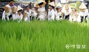 본격적인 더위와 장마가 시작되는 소서(小暑)인 7일 서울 미동초등학교 학생들이 서울 서대문구 농협박물관 앞 체험농장에서 도롱이(짚이나 왕골로 만든 비옷)와 갈모(비를 막는 모자) 등을 쓰고 ‘우기 옛 농사 체험’을 하고 있다. 장승윤 기자 tomato99@donga.com}