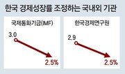 한국경제연구원(한경연)이 8일 올해 한국의 경제성장률 전망치를 2.9%에서 2.5%로 0.4%포인트 낮췄다. 예상보다 소비 회복세가 주춤하고 중국의 성장 둔화 등으로 수출이 타격을 입을 것으로 관측했다. 전국경제인연합회 산하 한경연은 이날 민간소비와 설비 및 건설투자, 수출 모두 약세를 보이며 올해 성장률이 예상치를 밑도는 2.5%에 머물 것이라고 밝혔다. 지난달 국제통화기금(IMF)이 한국의 성장률 전망치를 3.0%에서 2.5%로 하향 조정한 데 이어 국내외 기관들이 연이어 성장률 전망치를 낮춰 잡은 것이다. 한경연은 내수 부문에서 가장 큰 비중을 차지하는 민간소비가 2.9% 성장하여 지난해 민간소비 성장률(3.6%)을 밑돌 것으로 전망했다. 오미크론 확진자 급증으로 기대보다 소비 회복이 더디기 때문이라는 분석이다. 인플레이션 억제를 위한 기준금리 인상으로 원리금 상환 부담이 커지는 것도 소비 위축의 요인으로 꼽혔다. 투자는 글로벌 공급망 차질로 주요국 경기회복세가 약화하며 2.1% 증가에 머물 것으로 전망했다. 수출은 중국 성장세 둔화로 지난해 9.9% 성장보다 7.5%포인트 낮은 2.4% 성장에 그칠 것으로 보인다. 이는 지정학적 리스크 심화로 주요국의 경기 회복세가 둔화되고 있기 때문으로 풀이된다. 글로벌 신용평가사 피치는 현재 고강도 방역 조치 중인 중국의 성장률 전망치를 4.8%에서 4.3%로 낮춰 잡은 바 있다. 올해 성장률 전망치가 속속 하향 조정되며 새 정부의 경제정책 부담도 커지게 됐다. 물가·환율·공급망의 삼중고를 겪고 있는 기업들은 새 정부의 경제정책이 기업 활동에 활력을 불어넣어줄 것으로 기대하고 있지만 대내외 여건이 녹록지 않아서다. 이날 대한상공회의소는 국내 기업 322개를 대상으로 새 정부 경제정책과 최근 경제 상황을 조사한 결과 기업의 72.7%는 새 정부의 경제정책을 기대한다고 밝혔다. 시장과 민간을 중시하는 경제기조와 규제개혁 의지에 높은 기대를 나타낸 것이다. 다만 환율로 피해를 본 기업이 51.6%에 이르고 기업의 52.5%는 공급망 경색으로 피해를 보고 있다고 밝히는 등 외부 요인에 의한 경제 고통이 커지고 있어서 새 정부의 정책이 기업 경기 회복에 미치는 영향이 제한적일 수 있다는 우려도 나온다. 송충현 기자 balgun@donga.com}