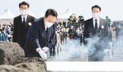 윤석열 대통령 당선인이 3일 제74주년 제주4·3추념식에 참석해 “희생자들과 유가족들의 온전한 명예 회복을 위해 노력하겠다”고 다짐했다. 보수 정당의 대통령 또는 대통령 당선인이 4·3추념식을 찾은 것은 이번이 처음이다. 윤 당선인은 이날 추념사에서 “2월 제가 이곳을 찾았을 때 눈보라가 쳤다”며 “오늘 보니 제주 곳곳에 붉은 동백꽃이 만개했다”고 말했다. 윤 당선인은 앞서 후보 시절이던 2월 5일 제주를 찾아 “4·3추모에 동참하는 일이 인권과 자유민주주의정신에 입각해 평화와 국민통합을 이루는 길”이라고 했다. 추념식에 참석하겠다는 약속을 지킨 것. 진보와 보수 진영을 가리지 않고 국민통합에 나서겠다는 메시지를 다시 한번 확인한 행보로 해석된다. ○ 동백꽃 배지 단 尹 당선인 윤 당선인은 제주 4·3평화공원에서 열린 추념식에 가슴에 동백꽃 배지를 달고 참석했다. 동백꽃은 4·3의 상징으로 여겨진다. 4·3의 영혼들이 붉은 동백꽃처럼 차가운 땅으로 소리 없이 스러져 갔다는 의미를 가지고 있다. 행사장 맨 앞줄에 착석한 윤 당선인은 행사가 시작되자 헌화와 분향을 한 뒤 두 차례 묵례를 했다. 윤 당선인은 분향 후 “4·3의 아픔을 치유하고 상흔을 돌보는 것은 4·3을 기억하는 바로 우리의 책임이며 화해와 상생, 그리고 미래로 나아가기 위한 대한민국의 몫”이라고 말했다. 이어 “생존 희생자들의 아픔과 힘든 시간을 이겨내 온 유가족들의 삶과 아픔도 국가가 책임 있게 어루만질 것”이라며 “제주 4.3평화공원이 담고 있는 평화와 인권의 가치가 널리 퍼져 나가 세계와 만날 수 있도록 새 정부에서도 노력하겠다”고 밝혔다. ‘화해와 상생’ ‘미래’라는 키워드를 통해 갈등과 분열이 아닌 국민통합으로 나아가자는 메시지를 강조한 것이다. 윤 당선인은 추념사 낭독 후 장내에 유족들을 향해 ‘90도’로 허리 숙여 인사를 하기도 했다. 윤 당선인 측은 이날 오전 열린 추념식에 참석하기 위해 한덕수 국무총리 내정자의 인사발표 시간을 오후로 미뤘다고 밝혔다. 김은혜 당선인 대변인은 기자들을 만나 “(추념식에 참석하겠다는) 약속을 지키고, 자유민주주의를 위해 희생됐던 영령들을 기리는 게 윤 당선인에게 중요했다”고 설명했다. 추념식에 참석한 국민의힘 이준석 대표도 “인수위에서 이(4·3 관련) 과제를 다룰 것”이라며 “앞으로 급물살을 타지 않을까 생각한다”고 밝혔다. 제주 지역사회와 4·3 관련 단체에서는 “환영한다”는 반응이 이어졌다. 오임종 제주4·3유족회장은 윤 당선인의 추념식 참석에 대해 “4·3의 완전한 해결에 큰 진전”이라며 “70여 년 동안 (이어진) 아픔을 치유하고 대한민국 대통합에서 의미 있는 걸음이길 기대한다”고 말했다. ○ 文대통령, SNS 메시지로 추모 문재인 대통령은 이날 추념식에 직접 참석하는 대신 소셜네트워크서비스(SNS)에 “5년 내내 제주 4·3과 함께해 왔던 것은 제게 큰 보람이었다”며 추모의 메시지를 올렸다. 문 대통령은 “아직 다하지 못한 과제들이 산 자들의 포용과 연대로 해결될 것이라 믿는다”며 “다음 정부에서도 노력이 이어지기를 기대한다”고 당부했다. 문 대통령은 재임 중 2018, 2020, 2021년 세 차례 추념식에 참석했지만 올해는 SNS 메시지로만 추모했다. 일각에선 이날 제주를 찾은 윤 당선인을 배려해 현장을 찾지 않은 것이란 해석도 나왔다. 이날 행사에는 김부겸 국무총리, 박범계 법무부 장관, 4·3 관련 단체와 희생자 유족 등이 참석했다. 김 총리는 추념사에서 “희생자 유족 신고 사업이 차질 없이 진행될 수 있도록 다음 정부에 그 내용을 잘 전달하겠다”고 강조했다.홍정수 기자 hong@donga.com신진우 기자 niceshin@donga.com제주=임재영 기자 jy788@donga.com}