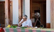 6일 오후 일본 도쿄 신주쿠구 한국문화원 4층 하늘정원. 일본 TV 드라마 시리즈 ‘고독한 미식가’의 주인공 마쓰시게 유타카(松重豊·58) 씨가 입장하더니 기와 문양 처마 아래에 마련된 테이블 뒤에 앉았다. 테이블 한쪽 끝에서 구워진 삼겹살이 전달됐다. 그는 깻잎과 상추를 손바닥에 놓더니 참기름에 찍은 삼겹살을 올렸다. 이어 구은 마늘, 콩나물을 차례로 놨다. 마지막으로 된장을 듬뿍 찍은 뒤 쌈을 싸고선 절반을 베어 먹었다. “음…, 여러 맛이 씹을수록 하나가 되는군요….” 삼겹살 쌈을 처음 먹은 그의 첫마디는 이랬다. 이어 드라마에서 나오던 것처럼 자세한 설명이 이어졌다. “가장 먼저 깻잎의 독특한 맛이 느껴지네요. 이어서 고기맛이 납니다. 그 다음은 마늘 맛을 느낄 수 있습니다. 베이스에는 참기름 맛이 자리하고 있습니다. 대단하네요.” 이날 마쓰시게 씨는 한국관광공사 도쿄지사가 주최한 ‘한국관광 여름축제 2021’ 행사에 참석했다. 1~10일까지 열리는 이번 행사는 K-뷰티, 넌버벌 퍼포먼스 ‘브레이크 아웃’, 한국관광 100선(選) 랜선여행 등 한국의 문화와 여행지를 일본인들에게 보여주기 위한 기획이다. 2012년 1월에 일본에서 첫 방송이 시작된 ‘고독한 미식가’는 지난달에 시즌9를 시작했다. 시즌9는 한국에서도 동시 방송되고 있다. 수입잡화상을 홀로 운영하는 주인공 마쓰시게 씨가 여러 출장길에서 맛집을 들러 음식을 온 미각을 동원해 먹으며 작은 행복을 찾는 내용이다. 한국 음식도 등장했다. 그는 2018년 서울에서 돼지갈비, 전주에서 비빔밥을 먹었고, 2019년 부산에서 낙곱새(낙지·곱창·새우를 넣은 볶음)를 먹었다. 이날 행사에서 마쓰시게 씨는 한국 촬영 경험에 대해 “음식을 먹기 전에 반찬이 나왔는데 그런 식문화는 처음이었다”며 “반찬만으로 너무 맛있고, 다 먹기 힘들 정도로 많아서 깜짝 놀랐다”고 말했다. 한국 음식의 특징을 묻는 사회자의 질문에 그는 “일본에 다 있는 재료인데, 한국 음식은 전혀 다른 맛을 낸다. 그래서 한국 음식을 먹으면 여러 자극을 받는다”고 말했다. 한국에 가면 다시 먹고 싶은 음식으로 팥빙수를 꼽았다. 그는 “부산 촬영 갔을 때 저녁에 디즈트를 먹으러 나갔다. 겨울인데 빙수에 여러 재료와 콩가루가 올라와 있었다. 너무나 맛있었다”고 말했다. 이번 행사는 사전 신청한 일본인 1020명과 함께 화상회의 플랫폼 줌(zoom)으로 쌍방향으로 소통하면서 이뤄졌다. 그 중 20명은 관광공사가 선물로 보낸 삼겹살을 직접 구워먹으며 참여했다. 정진수 한국관광공사 도쿄지사장은 “코로나19 백신이 보급되면서 일본인의 해외 관광이 재개될 때 한국을 제1 여행지로 선택하게끔 하기 하는 게 목표”라고 말했다. 다음은 마쓰시게 씨가 사회자와 나눈 문답 요약. Q: 드라마 제목이 ‘고독한 미식가’다. 평상시 혼자 밥 먹는 경우 있나. A: 있다. 그런데 서비스로 음식을 더 주면 곤란하다. 평상시 많이 안 먹는다. 본업이 배우여서 체중 조절을 해야 한다. Q: 오늘 삼겹살을 먹었는데, 일본에서 먹어본 적 있나. A: 처음 먹었다. Q: 한국 음식이 맵지 않았나. A: 나는 어렸을 때부터 매운 음식 좋아했다. 일본인 중에 매운 음식에 강한 편이다. 한국에서 음식 먹었을 때 땀을 좀 흘렸지만 맛있었다. 한국 음식은 매우면서 매우 맛있다. Q: 한국 촬영에서 기억나는 것은. A: 한국 톱가수 성시경 씨를 만난 것이다. 그는 나의 팬이라고 했다. 내가 전주 촬영 갔을 때 전주까지 와 줬다. 코디네이터처럼 나를 도와줬다. 멋진 목소리를 가진 가수로부터 엄청난 도움을 받았다. 너무나 인상 깊다. Q: 한국에 다시 가면 먹고 싶은 음식은. A: 2019년 부산에서 촬영했을 때 저녁에 디저트를 사 먹으로 나갔다. 가키고오리(얼음을 갈아서 만든 일본식 빙수) 같은 것에 여러 재료와 콩가루가 뿌려져 있었다. 겨울이었는데도 너무나 맛 있었다. 다시 먹고 싶다. Q: 한국 음식의 특징은. 고기, 마늘, 참기름 등은 모두 일본에도 있다. 그런데 한국은 완전히 다른 맛을 낸다. 매일 먹는 재료가 한국에서 요리하면 다른 맛을 낸다는 게 매우 놀랍다. 가까운 이웃 국가인데도 일본과 동일한 재료로 다른 맛을 내 여러 자극을 받는다. 내일이라도 당장 가고 싶다. 참을 수 없다. Q: 오늘 디저트는 참외다. A: 후쿠오카현 후쿠오카시가 내 고향이다. 어릴 때 참외를 많이 먹었다. 향기가 멜론과 다른 독특한 향이 난다. 어릴 때 참외를 먹고 엄청나게 달다고 생각했는데, 요즘은 그때만큼 단 것 같지는 않다. 아무래도 단 과일이 많이 나오고 있으니. 참외는 ‘여름 휴가의 맛’과 같은 느낌이다.도쿄=박형준 특파원 lovesong@donga.com}