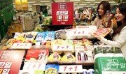 지난해 12월 31일 서울 용산구 이마트 용산점에서 모델들이 ‘초탄일(초특가 탄생일)’ 행사 제품들을 소개하고 있다. 이마트는 1월 1일 하루 동안 진행하는 초탄일 행사를 통해 가전부터 신선식품까지 다양한 종류의 제품을 최대 50%까지 싸게 판매한다. 최혁중 기자 sajinman@donga.com}