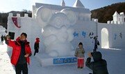 10일 오후 강원 태백산눈축제를 찾은 관람객들이 대형 눈 조각 작품들과 함께 즐거운 시간을 보내고 있다. 포근한 날씨와 최근 내린 많은 비로 대형 겨울 축제들이 줄줄이 연기됐으거나 이 축제는 예정대로 19일까지 열린다. 태백=최혁중 기자 sajinman@donga.com}
