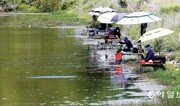 한낮 기온이 초여름 날씨를 보인 31일 전남 영광군 염산면의 한 저수지에서 시민들이 커다란 비치 파라솔을 펴놓고 낚시를 하고 있다.박영철 기자 skyblue@donga.com}