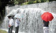 30도를 오르내리는 더운 날씨를 보인 7일 광주 동구 학운동 광주천변 인공폭포를 찾은 시민들이 시원한 폭포수를 보며 한낮의 더위를 식히고 있다.박영철 기자 skyblue@donga.com}
