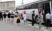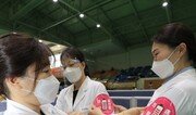 30도를 넘는 무더운 날씨를 보인 8일 광주 북구 전남대학교 체육관에 마련된 코로나19 접종센터에서 의료진들이 서로의 가운에 희망충전 스티커를 부착하며 응원하고 있습니다.하루 빨리 깊고 어두운 코로나 터널에서 빠져나올 수 있기를 기원합니다. 광주=박영철 기자 skyblue@donga.com}