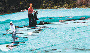 여름 햇살과 해풍을 즐기려는 듯 다시마가 그물 위에 가지런히 누웠습니다. 넓은 건조장을 캔버스 삼아 바다는 오늘도 한 폭의 수채화를 그립니다. ―전남 완도군 금일도에서 박영철 기자 skyblue@donga.com}