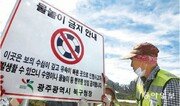 16일 광주 북구 망월동의 소하천에서 북구청 하수팀 직원들이 물놀이 사고 예방을 위해 하천 물놀이 금지 표지판을 설치하고 있다.박영철 기자 skyblue@donga.com}