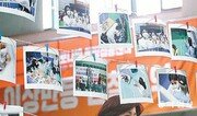 28일 광주 북구 코로나19 예방접종센터에서 의료진을 응원하기 위해 북구 보건소 직원들이 접종센터의 활동을 기록한 사진을 전시하려 내걸고 있다. 이 사진 70여 점에는 북구 홍보팀 직원들이 접종센터 의료진의 희로애락을 담았다. 박영철 기자 skyblue@donga.com}