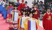 1일 서울 종로구 세운상가 앞 다시세운광장에서 열린 ‘서울365―역사를 걷다 패션쇼’에서 남녀 모델들이 전통 의복을 입고 걷고 있다. 이날 패션쇼는 ‘왕과 왕비의 나들이 행차’를 주제로 전통 의복의 멋과 아름다움을 보여주는 행사다. 원대연 기자 yeon72@donga.com}