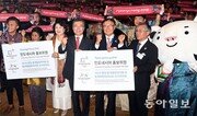 지난해 12월 31일 서울광장에서 2018 평창 겨울올림픽과 패럴림픽의 성공적인 개최를 기원하는 플래시몹이 진행됐다. 문화체육관광부와 한국콘텐츠진흥원이 주최한 이 행사에서는 라인 프렌즈와 뽀로로 등의 캐릭터가 등장해 평창 올림픽에 출전하는 한국 대표팀을 응원했다.원대연 기자 yeon72@donga.com}