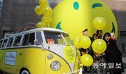 현대백화점은 이달 31일까지 서울, 대구 등에서 월요일과 금요일, 토요일 오후 동안 돌아다니는 래핑카 ‘스마일리카’를 운행한다. 백화점 측은 노란 동그라미에 눈 두 개와 웃는 입 모양의 캐릭터 ‘스마일리’로 이 자동차를 꾸며 새해 고객들에게 웃음을 줄 목적으로 만들었다고 밝혔다. 원대연 기자 yeon72@donga.com}