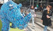 15일 서울 청계천 청계광장∼광통교 구간에서 열린 ‘제5회 청계천 업사이클 페스티벌 류(流)’에서 시민들이 버려진 콜라 캔을 이용해 만든 코뿔소 모양 조형물을 보고 있다. 21일까지 계속되는 이번 행사에서는 폐자원과 폐자재를 활용해 만든 예술 작품들이 전시된다.김동주 기자 zoo@donga.com}