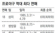 KIA의 14연패는 ‘충격’ 이상의 의미를 갖는다. 해태 타이거즈로부터 이어받은 명문 구단 KIA의 역사엔 두 자릿수 연패가 없었기 때문이다. 모구단의 자금난에 선동열, 이종범을 내보내며 드림리그 최하위로 처졌던 2000년에도 9연패가 최악의 성적이었다. 1982년부터 1995년까지 단 한 차례도 5연패 이상을 당하지 않았다. KIA가 타이거즈를 인수한 후에도 2005년 8연패가 가장 안 좋은 기록으로 남아 있다. KIA의 14연패는 전체 프로야구 역사에서도 6번째로 긴 연속 패배다. 삼미(1985년 18연패)-쌍방울(1999년 17연패)-롯데(2002년 16연패, 2003년 15연패)-태평양(1993년 15연패)에 이은 기록이다. 현존하는 팀 중에서는 KIA보다 긴 연패를 경험한 팀은 롯데가 유일하다. 디펜딩 챔피언이 다음 해 14연패 이상을 당하는 것도 물론 처음 있는 일이다. 게다가 6일부터 2위 두산과 3연전을 벌일 예정이어서 불명예 기록 행진이 계속될지도 모른다. 하지만 기존 구단들의 연패와 상황이 약간 다르다는 점은 희망적이다. 14연패 이상 기록한 팀들은 모두 시즌 최하위에 머물렀는데 KIA는 아직 6위를 유지하고 있다. 4위 롯데와는 3.5게임 차, 5위 LG와는 1.5게임 차에 불과하다. 이대로라면 14연패한 팀 중 사상 최초로 꼴찌 신세를 면하는 팀이 될 가능성도 충분하다. 14연패를 딛고 사상 최초로 포스트시즌에 나가는 ‘대반전’을 보여줄 수도 있다. 더구나 올스타전 휴식기 후에는 에이스 윤석민과 2009시즌 MVP 김상현이 복귀한다. KIA의 연패 후가 주목되는 이유다.유근형 기자 noel@donga.com}