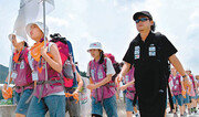 “와∼ 충남 연기군이다. 이제 반 이상 왔다.” 14일 오후 1시쯤 국도 1호선을 따라 걷던 대원들이 연기군 경계를 알리는 표지판을 발견하곤 일제히 환호성을 지른다. 박영석 대장이 이끄는 2010 대한민국희망원정대가 6일 전남 여수시를 출발해 하루 평균 30km씩 행군한 지 9일 만에 여정의 반환점을 돈 것이다. 2004년부터 대학생들과 국토대장정을 진행한 박 대장이 올해도 여수∼전북 남원∼전주∼충남 논산∼천안을 거쳐 서울까지 총 400여 km를 종단하고 있다. 약 2000명의 지원자 중 서류, 면접 전형을 거쳐 남산 순환도로 3km를 뛰는 체력 테스트를 통과한 96명의 정예 대원은 한 명의 낙오자도 없이 이곳까지 왔다. 하지만 폭염에 250km를 걸어온 대원들의 몸 상태가 정상일 리 없다. 물집 한두 개는 기본이고 관절염, 어깨 통증은 덤이다. 발톱 2개가 빠진 채 행군하고 있는 김민석 대원(24)은 “저 때문에 전원 완주 기수의 명예를 포기할 수는 없지요”라며 웃는다. 초등학교에서 숙영하는 터라 제대로 된 샤워는 잊은 지 오래다. 빨래 말릴 시간이 없어 양말 손수건 티셔츠 슬리퍼 등 빨랫감은 행군 중 배낭에 걸어 말린다. 대원들이 가장 기다리는 것은 바로 휴식시간에 지급되는 간식. 복숭아를 입에 문 황세원 대원(여·24)은 “마약이 있다면 바로 이런 맛 아닐까요. 복숭아씨를 여기 심어서 다음 기수 후배들에게 전해주고 싶네요”라며 행복한 미소를 지었다. 오후 6시경 연기군 연봉초등학교에 들어선 대원들은 “천국에 온 것 같다”며 환호한다. 몸은 천근만근이지만 오늘도 해냈다는 뿌듯함에 상기된 얼굴들이다. 박 대장은 “처음 시작할 때랑 비교해 보면 눈빛들이 다르다”며 대원들의 손을 잡고 격려했다. 19일 최종 목적지인 서울광장에서도 96명 전원을 다시 볼 수 있기를 기대한다.연기=유근형 기자 noel@donga.com이승섭 인턴기자 성균관대 문헌정보학과 4학년}