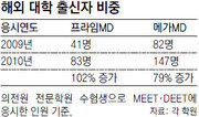 “미국에서는 이젠 더 할 수 있는 게 없어요.” 미 코넬대 생명공학과에 재학 중인 조모 씨(22)는 최근 한국의 의학전문대학원 진학을 결심했다. 학부를 졸업한 후 귀국해 바로 의전원 준비에 나서겠다는 것이다. 그는 2008년 말 글로벌 금융위기로 미국 의·치의학전문대학원의 해외 유학생 쿼터가 줄면서 한국 복귀를 결심했다고 털어놨다. 그는 “미국에서 이공계열 학부를 다니는 학생 중 절반 이상이 한국 의전원 진학을 고려할 정도”라고 현지 분위기를 전했다. 미국 대학에 진학한 유학생들 가운데 졸업 후 국내로 돌아와 의전원 입학을 목표로 삼는 학생들이 늘어나고 있다. 의·치의학전문대학원 전문학원인 프라임MD에 따르면 지난해 8월 ‘2010학년도 의학입문시험(MEET)과 치의학입문시험(DEET)’에 응시한 외국대학 학부 출신 학원 수강생은 83명으로 전년의 41명보다 2배 이상 늘었다. 이 분야 전문학원인 메가MD도 같은 시험에 응시한 외국 대학학부 출신이 147명으로 전년도 82명보다 2배 가까이 증가했다. 지난해 민주당 김춘진 의원이 발표한 자료에 따르면 2009학년도 고려대 의전원에 입학한 53명 중 14명이 외국 학부 출신으로 전체의 26.4%에 이르렀다. 해외유학파가 국내 의전원에 몰리는 이유는 미국에서 의전원 ‘진학길’이 사실상 막혔기 때문이다. 미 일리노이대에 재학 중인 유모 씨(23)는 “유학생이 미국 의전원에 들어가는 것은 원래부터 바늘구멍이었는데 그나마 있던 ‘유학생 쿼터’도 금융위기 이후에는 시민권자들에게 먼저 돌아가 유학생에게는 불리한 상황”이라고 전했다. 재미 유학생 사회에서는 “아이비리그를 졸업하고, 영주권이 있어도 유학생은 의전원에 들어가기 힘들다”는 자조 섞인 말도 나온다. 국내 의전원들이 입시전형에 외국대학 졸업자 특별전형을 두고 있는 것도 미 대학 학부생의 국내 복귀에 영향을 주고 있다. 가천의과대, 강원대, 부산대, 중앙대 등에서는 수시모집 특별전형으로 외국대학 출신자 전형을 실시하고 있다. 특히 상당수 대학이 의전원 체제를 포기하고, 2015년부터 의대 전환 방침을 밝히면서 지금을 의전원 입학의 마지막 기회로 보고 한국 의전원 문을 두드리는 해외 대학 학부생이 부쩍 늘고 있다는 분석도 나온다. 한 의전원 전문학원 관계자는 “해외 대학 출신자들의 국내 의전원 ‘U턴 현상’은 미국 명문대 재학생을 중심으로 당분간 이어질 것”으로 내다봤다.유근형 기자 noel@donga.com박재명 기자 jmpark@donga.com}