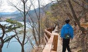 제주 ‘올레길’을 시작으로 전국에 걷기 바람이 한창이던 2009년 충북 괴산에 4km 길이의 산책길이 하나 생겼다. 300km가 넘는 올레길에 비하면 아주 짧은 거리지만 가벼운 마음으로 이 길을 찾았다가 반한 사람들의 입소문을 타면서 많은 사람들이 몰려오고 있다. 바로 충북 괴산군 칠성면 외사리 사오랑 마을에서 산골마을인 산막이 마을까지 이어지는 ‘산막이옛길’이다. 괴산군이 ‘갈은권역 농촌마을 종합개발사업’의 하나로 13억여 원을 들여 개설한 이 길은 산과 물, 숲이 길과 어우러져 있다. 산막이옛길 문화관광해설사인 이대중 씨(65)는 “산막이는 ‘산의 마지막’, ‘산으로 가로막혔다’는 뜻”이라며 “임진왜란 당시 왜적을 피해 산속으로 들어갔던 피란민들이 산에 막혀 더이상 가지 못하고 머물렀다고 해서 이런 이름을 갖게 됐다”고 설명했다. 길은 주차장 인근 안내소를 지나면서 시작된다. 소나무 숲길 사이로 시멘트길을 만나면서 본격적으로 걷는 재미를 느낄 수 있다. 평균 너비 2m의 산막이옛길은 시멘트길과 흙길, 나무받침(데크)길로 돼 있는데 나무받침길이 주를 이룬다. 고인돌 쉼터와 연리지(連理枝·뿌리가 다른 나뭇가지가 서로 맞닿아 한 나무처럼 자라는 것)를 지나면 소나무 출렁다리가 나온다. 부근에는 남녀가 엉켜있는 듯한 모양을 해 ‘19세 이하 관람금지’ 표지판이 걸려 있는 소나무(정사목)가 있다. 노루샘∼연화담을 지나면 괴산호의 풍경을 한눈에 보며 도시의 스트레스를 잠시나마 잊을 수 있는 망세루(忘世樓)를 만난다. 이후 앉은뱅이 약수∼얼음바람골∼호수전망대∼괴산바위∼괴음정∼고공전망대∼마흔고개∼다래숲동굴∼진달래동산∼가재연못 등의 구간을 거치면 산막이옛길의 끝인 나루터에 다다른다. 나루에서는 유람선을 수시로 운항한다. 어른 5000원, 어린이(13세 이하) 3000원. 걷기가 성에 차지 않은 사람들은 산막이옛길을 둘러싼 등잔봉에 올라볼 만하다. 등산코스는 2개. 1코스는 노루샘∼등잔봉(해발 450m)∼한반도전망대∼천장봉∼산막이마을 4.4km, 2코스는 노루샘∼등잔봉∼한반도전망대∼천장봉∼진달래동산의 2.9km다. 정상인 등잔봉에 오르면 한반도를 빼닮은 지형과 괴산댐 군자산 등이 한눈에 들어온다. 등잔봉은 옛날 한양으로 과거를 보러 간 아들의 장원급제를 위해 어머니가 등잔불을 켜놓고 100일간 치성을 올렸다는 전설에서 유래됐다. 고속도로를 이용할 경우 증평 나들목을 나와 괴산읍∼칠성면∼괴산댐∼산막이옛길 주차장으로 오면 된다. 또 괴산나들목이나 연풍나들목을 이용해 칠성면∼괴산댐∼산막이옛길 주차장으로도 올 수 있다. 주변에는 여름철 피서지로 이름난 쌍곡계곡을 비롯해 칠보산 각연사 미선나무 자생지(천연기념물 221호) 등 가볼 만한 곳이 풍부하다. 먹을거리로는 올갱이국이 손꼽힌다. 올갱이는 다슬기의 사투리로 숙취 해소에 좋고 간 보호 능력이 뛰어난 것으로 알려져 주로 해장국 재료로 쓰이고 있다. 이 지역 올갱이는 다른 지역에 비해 초록빛이 많이 돌고 모양도 둥근 편이다. 구수한 된장국에 혀에 감기는 부드러운 각종 채소가 듬뿍 들어간 올갱이국은 쌉쌀하면서도 뒷맛이 시원하다. 산막이옛길 입구의 둔율올갱이마을에서 해마다 7월이면 올갱이 축제를 열고 있다.장기우 기자 straw825@donga.com}