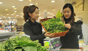 15일 대구 북구 칠성동2가 롯데백화점 대구점 지하 2층 식품매장에서 한 고객이 냉이 방풍나물 취나물 쑥 같은 봄나물을 고르고 있다. 롯데백화점 대구점 제공}