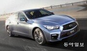 ‘독일 세단에 도전장.’ 한국닛산이 이달 11일 고급브랜드인 인피니티의 스포츠세단 ‘Q50’을 출시하며 밝힌 포부다. 지난해 국내 수입차 시장의 67.5%를 차지한 독일 브랜드를 견제하겠다는 의미다. 한국닛산의 기대대로 Q50은 24일 오전 10시 현재 모 포털사이트 자동차 검색어 순위에서 수입차로는 가장 높은 3위에 랭크되는 등 시장의 높은 관심을 끌고 있다. 한국닛산은 15일부터 4주간 주말마다 부산, 대구 등 전국 전시장을 돌며 론칭 이벤트를 실시하는 등 초반 분위기 몰이에 나서고 있다. 지난해(1116대) 대비 34% 높여 잡은 올해 판매 목표(1500대)를 달성하는 데 Q50이 일등공신의 역할을 해주길 기대하는 모습이다.세계챔피언이 점검한 차 Q50은 인피니티가 차량 이름에 Q를 적용한 이후 처음으로 선보이는 모델이다. 인피니티가 Q50에 얼마만큼 공을 들였을지 가늠할 수 있는 대목이다. 실제로 Q50은 설계단계에서부터 화제가 된 바 있다. 포뮬러원(F1) 대회 인피니티 레드불 레이싱팀 소속이자 최연소로 4시즌 연속 챔피언에 등극한 제바스티안 페텔이 차량의 주행성능을 향상시키기 위해 차량 개발 과정에 참여했기 때문이다. 페텔은 미국, 독일 등 세계 다양한 서킷에서 Q50을 타며 주행 감각 및 스티어링휠의 조향 반응 등을 점검했다. 이번에 국내에 선보인 Q50은 2.2L급 디젤 모델과 3.5L급 하이브리드 모델(엔진과 전기모터를 번갈아 사용하는 차) 두 종류다. 국내에 출시되지 않은 모델로는 3.7L급 가솔린 모델이 있다. 디젤 모델의 경우 2.2L급 직분사 4기통 터보 디젤 엔진이 탑재됐다. 최고출력은 170마력 수준이다. 50kW급 전기모터와 3.5L급 6기통 가솔린 엔진을 장착한 하이브리드 모델의 최고출력은 364마력이다. 주행모드는 스탠더드, 스포츠, 스노, 에코, 퍼스널 모드 등 총 5종류가 가능하다. 세계 최초로 개발한 기술 적용 최첨단 기술도 대거 적용했다. 대표적인 기술이 인피니티가 세계 최초로 개발한 다이렉트 어댑티브 스티어링 시스템이다. 전자장비를 통해 스티어링휠과 타이어를 연결하는 이 시스템은 스티어링휠 조작에 따라 차량이 즉각적이고 정확하게 움직이는 것이 특징이다. 거친 노면 위를 주행할 때 스티어링휠로 전달되는 진동이 작은 것 또한 장점으로 꼽힌다. 한국닛산 관계자는 “메인 전자제어장치(ECU) 외에 ECU 2개를 추가로 마련해 혹시라도 발생할지 모를 전자 장치 오류에 대비했다”고 설명했다. 실제로 인피니티의 이 기술은 캐나다 자동차기자협회(AJAC)가 선정한 ‘2014 최고의 혁신 기술상’을 받는 등 뛰어난 기술력을 인정받았다고 덧붙였다. 이외에도 Q50에는 전방 추돌 예측 경고 시스템, 차선이탈방지 시스템 등이 탑재됐다. 실내 공간 확보에도 공을 들였다. 실내 공간 규모는 2885L 수준이며 휠베이스(앞바퀴 중앙부터 뒷바퀴 중앙까지의 거리) 2850mm, 헤드룸(탑승객의 머리가 위치하는 공간) 1002mm 등의 공간은 동급 차량 이상이라는 설명이다. 가격은 디젤 모델이 4350만∼4890만 원, 하이브리드 모델은 6760만 원이다.강홍구 기자 windup@donga.com}