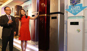 캐리어에어컨은 6일 서울 중구 소공동 롯데호텔에서 립스틱 모양의 신제품 ‘립스틱 플러스’를 선보였다. 강성희 캐리어에어컨 회장(왼쪽)과 배우 이보영이 제품을 소개하고 있다. 가격은 250만∼350만 원대. 김재명 기자 base@donga.com}
