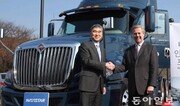 미국 상용차 제조업체인 나비스타는 12일 상용트럭 ‘인터내셔널 프로스타’를 국내에 출시했다. 2012년 3월 한미 자유무역협정(FTA)이 발효된 이후 미국산 온로드(포장도로) 상용차가 국내에 들어오는 것은 이번이 처음이다. 길이 7820mm, 폭 2500mm, 높이 3800mm 크기(슬리퍼 모델 기준)에 연료소비효율은 L당 4km 수준이다. 가격은 부가가치세 제외 1억5900만 원이다.}