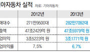 엔화 약세의 여파로 현대자동차의 영업이익률이 3년 만에 한 자릿수대로 떨어졌다. 현대차는 23일 서울 서초구 양재동 본사에서 가진 기업설명회(IR)에서 이런 내용을 담은 지난해 실적을 발표했다. 국내외를 합친 판매량은 473만2366대로 2012년(441만357대)보다 7.3% 늘었다. 매출액은 87조3076억 원으로 전년 동기(84조4697억 원) 대비 3.4% 증가했다. 반면 영업이익은 8조3155억 원으로 2012년(8조4406억 원)에 비해 1.5% 줄었다. 이에 따라 영업이익률(매출액 대비 영업이익)은 9.5%에 그쳤다. 현대차가 한 자릿수대 영업이익률을 낸 것은 2010년(8.8%) 이후 처음이다. ○ 환율이 치명타 지난해 국내 시장에서 달러나 엔화, 유로화로 차량 대금을 결제하는 수입차 업체들은 원화 강세와 자유무역협정(FTA)에 따른 관세 인하에 힘입어 신차 가격을 잇달아 내렸다. 그 결과 수입차 업체의 국내 시장 점유율은 2012년 9.0%에서 지난해 10.7%까지 높아졌다. ▼ “올해 중대형 수출비중 높여 수익성 개선” ▼국내 시장에서 선전하는 수입차 대부분이 수익성이 높은 중대형차인 것도 현대차의 영업이익률을 낮춘 또 다른 원인이다. 중대형차 시장을 수입차 업체에 잠식당하면서 수익 하락폭이 그만큼 가팔라졌다는 얘기다. 현대차의 중대형차 마진율은 소형차의 갑절 이상인 것으로 알려졌다. 해외 시장에서는 엔화 약세로 가격 경쟁력이 높아진 일본 자동차 업체의 공세가 현대차의 수익성을 압박했다. 이원희 현대차 재경본부장은 “엔화 약세가 올해도 계속될 것으로 보고 환율 전망을 보수적으로 잡고 있다”고 말했다.○ 고급차 판매 확대가 열쇠 하지만 현대차의 지난해 실적은 외부 환경이 악화된 정도를 감안하면 “그런대로 선방했다”는 게 증권가의 대체적인 평가다. 최중혁 신한금융투자 연구원은 “현대차의 영업이익률은 비록 전년보다 낮아졌지만 제너럴모터스(GM), 폴크스바겐 등 주요 글로벌 업체의 평균치와 비교해 결코 낮은 수준은 아니다”라면서도 “다만, 미국차 업체의 경우 현지 회복세가 뚜렷하고 일본차 업체도 엔화 약세로 수익성이 크게 개선될 것으로 보인다”고 설명했다. 현대차는 올해 세계 시장에서 3.5% 증가한 490만 대를 판매할 계획이다. 양적 성장보다는 수익성이 높은 중대형차 판매 비중을 높이는 데 주력한다는 목표를 세웠다. 이를 위해 지난해 말 국내에 선보인 것을 시작으로 올해부터 미국과 유럽에도 수출하는 대형세단 신형 제네시스와 상반기(1∼6월)에 나올 쏘나타 후속모델(프로젝트명 LF)에 대한 판촉을 강화할 예정이다. 인도 중국 등 자동차 수요가 많은 국가에서도 고급 모델로 승부를 걸 계획이다. 인도에서는 올해 스포츠유틸리티차량(SUV) 싼타페의 판매를 시작한다. 중국에서는 지난해 11월 판매를 시작한 현지형 중형차 밍투의 대대적인 판촉에 나서기로 했다.이진석 gene@donga.com·강홍구 기자}
