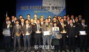 한국품질경영학회와 동아일보가 공동주최하고 한국지속경영평가원과 월간 CEO가 주관한 ‘2011 국민생활안전 캠페인 공동선언식’이 27일 서울 용산구 한남동 하얏트호텔에서 열렸다. 국민생활안전 우수기업 대표들이 기념촬영을 하고 있다. 김재명 기자 base@donga.com}