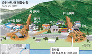 27일 하루 동안 서울 서초구와 춘천에서 2건의 산사태로 29명의 사망자가 발생하자 산사태에 대한 경각심이 크게 높아지고 있다. 산림청은 계속되는 산사태에 27일 강원 춘천시 등 32개 시군에 산사태 특보를 발령했다. 올해 산사태가 계속 일어나는 이유는 집중호우 때문이다. 산사태 전문가들이 꼽는 산사태의 주요 외부원인은 지진 화산 강우다. 하지만 지진이나 화산 활동이 드문 한국의 경우 대부분 잦은 비가 내리는 것이 산사태의 주요 원인이다. 산림청 관계자는 “6월 말부터 계속 비가 내려 산이 불어나는 물을 더는 흡수하지 못하고 있다”며 “땅이 포화상태가 되면서 결국 무너지는 것이 최근 잇따른 산사태로 나타나는 것”이라고 말했다. 현장에서 보는 산사태 원인도 비슷하다. 최원식 강원도 재난방재과장은 “지난달 말부터 장마로 평년에 비해 많은 비가 내린 데다 이날 시간당 최고 40mm 이상의 비가 내렸기 때문에 급작스러운 산사태가 발생했다”고 말했다. 하지만 단순히 비가 많이 내린다고 해서 산사태가 자주 일어나는 것은 아니다. 많은 양의 비가 짧은 시간에 내릴 경우 산사태 위험도가 급속히 커진다. 중부지방 연평균 강우량의 절반에 가까운 비가 하루 만에 내린 26일과 27일의 경우 산사태가 일어날 수 있는 최악의 조건을 갖췄다고 볼 수 있다. 실제 역대 산사태 피해 규모를 봐도 집중호우가 자주 쏟아지는 장마기간에 비가 많이 온 해는 산사태 피해가 컸다. 장마 기간 전국 평균 강수량이 693.4mm에 이르는 등 집중호우가 잦았던 2006년에는 산사태 피해 면적이 1597ha였다. 반면에 강수량이 각각 318.8mm와 370.2mm에 그친 2007년과 2008년은 산사태 피해가 74ha와 102ha에 그쳤다. 올해는 현재까지 169ha의 산사태 피해를 입었다. 이창우 국립산림과학원 연구사는 “산사태로 떠내려 온 토사가 계곡물과 합쳐지는 경우에 가장 큰 피해가 발생한다”며 “산사태가 빈발하는 지역에는 정부나 지자체 등에서 토사를 막을 댐을 꼭 설치해야 한다”고 말했다. 전문가들은 자신이 살고 있는 지역이 산사태 위험 지역인지 파악하는 것도 중요하다고 입을 모은다. 국내에서는 산림청이 서비스하는 ‘산사태위험지관리시스템’(sansatai.forest.go.kr)에서 전국 모든 산의 산사태 위험도를 4등급으로 구분해 보여주고 있다. 박재명 기자 jmpark@donga.com 춘천=이인모 기자 imlee@donga.com }
