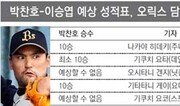 일본프로야구 오릭스의 오키나와 미야코지마 캠프 마지막 날인 17일. 오카다 아키노부 감독은 담당기자들과 캠프 정리를 겸한 대화 시간을 가졌다. 오카다 감독은 “실력으로 보나 그간의 성적으로 보나 이승엽(35)과 박찬호(38)는 우리 팀의 베스트가 아닌가”라며 “둘의 활약 여부에 우리 팀의 올 시즌이 달려 있다”고 말했다. 그렇다면 1일 캠프 시작부터 이들의 일거수일투족을 지켜본 오릭스 담당 일본 기자들은 올 시즌을 어떻게 예상하고 있을까.○ 이승엽-30홈런은 기본 이승엽의 화려한 부활에는 이견이 없었다. 데일리스포츠의 기쿠치 요타 기자는 “40홈런을 쳐도 이상하지 않을 것”이라고 했다. 그는 “요미우리에서는 큰 부담을 등에 지고 있었고 최근 2, 3년간 출장 기회도 제대로 없었다. 하지만 오릭스에선 마음껏 날개를 펼칠 수 있다. 못해도 30홈런은 칠 것”이라고 낙관했다. 주니치스포츠의 나카야 히데키 기자는 “이승엽이 전성기의 스윙을 하고 있다. 오카다 감독과 코치들로부터 ‘이승엽이 타석에 들어서면 왠지 모르게 칠 것만 같다는 느낌을 받는다’는 얘기를 들었다”고 했다. 지난해 33개로 퍼시픽리그 홈런왕에 오른 T-오카다와의 시너지 효과를 기대하는 목소리도 많았다. 4번 타자인 T-오카다 뒤에서 5번이나 6번을 칠 이승엽이 아무래도 더 많은 찬스를 가질 수 있다. 둘이 앞서거니 뒤서거니 하며 동시에 폭발할 가능성이 크다는 것이다. 하지만 퍼시픽리그에는 다루빗슈 유(니혼햄), 와다 쓰요시(소프트뱅크), 와쿠이 히데아키(세이부) 등 일본을 대표하는 투수가 즐비하다. 센트럴리그에 비해 구장 규모도 크다. 20홈런을 예상한 스포츠호치의 기쿠치 요코 기자는 “20홈런도 적지 않다. 퍼시픽리그에서는 20∼25개만 쳐도 성공이라고 평가할 수 있다”고 말했다. ○ 박찬호-10승만 해준다면 박찬호에 대해서는 기대와 불안이 엇갈렸다. 메이저리그에서 아시아 선수 최다승(124승)을 거둔 경력은 인정하지만 생소한 일본야구에 순조롭게 적응하는 게 쉽지만은 않아서다. 요미우리신문의 기타타니 게이 기자는 “메이저리그와는 공도, 마운드도, 선수들도 다르다. 적응력이 관건”이라며 “다행히 박찬호는 감독, 코치는 물론이고 선수들과 자유롭게 소통하려는 자세를 갖고 있다. 순조롭게 적응한다면 두 자릿수 승수를 거둘 수 있을 것”이라고 했다. 최근 몇 년간 불펜투수로 뛴 탓에 선발투수로 풀 시즌을 소화할 수 있느냐에 주목하는 목소리도 있었다. 나이에 따른 체력이 부담이 될 수 있다. 아직 제대로 실전을 본 적이 없어 예상 승수를 꼽기 힘들다는 의견이 많았다. 닛칸스포츠의 오시타니 겐지 기자는 “이제 겨우 연습경기 하나를 치렀다. 제구력이 좋다는 느낌을 받았지만 구위 자체를 평가하긴 이르다. 워낙 훌륭한 경력을 가진 선수이니 그에 상응하는 성적을 내지 않겠는가”라고 말했다.오키나와=이헌재 기자 uni@donga.com}
