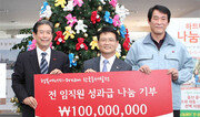 한국동서발전(사장 장주옥)은 1일 2014년도 공공기관 중간평가에 따른 임직원 성과급 등으로 마련한 1억 원을 사회복지공동모금회에 전달했다고 2일 밝혔다. 동서발전은 최근 공공기관 중간평가에 따라 임직원들에게 지급된 성과급 중 7500만 원을 사회공헌활동 재원으로 활용하기로 의견을 모았다. 동서발전은 이 성과급에 회사 재원을 합한 1억 원을 연말 소외계층을 위한 후원금으로 기부했다. 동서발전은 정부의 공공기관 정상화 정책에 적극적으로 동참해 부채를 크게 줄인 점을 평가받아 10월 30일 기획재정부가 발표한 공공기관 중간평가에서 18곳의 부채중점관리 공공기관 중 1위를 차지했다. 올해 2966억 원의 부채를 줄이기로 했던 동서발전은 사업조정과 경영효율화 등을 통해 목표액보다 많은 2990억 원의 부채를 감축했다. 동서발전은 또 연말 소외계층 아동을 후원하기 위해 3일부터 한 달간 임직원과 방문객을 대상으로 ‘나눔트리’ 캠페인을 진행하기로 했다. ‘나눔트리’ 캠페인은 사회복지법인 ‘하트하트재단’과 함께 진행하는 모금활동으로 울산 중구 동서발전 본사에 크리스마스트리를 설치한 뒤 방문객과 임직원 중 기부 희망자로부터 1만 원의 후원금을 받고 곰 인형을 선물하는 방식으로 진행된다. 동서발전은 나눔트리 캠페인에서 모금한 액수만큼 회사가 기부금을 내는 ‘매칭 방식’으로 기부금을 마련해 연말 울산지역 소외계층 아동을 위한 후원금을 전달할 계획이다. 세종=문병기 기자 weappon@donga.com}