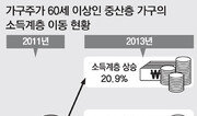 가계부채가 사상 최대로 늘어난 가운데 부채가 없던 가구 중 30%가 지난 2년간 새로 빚을 진 것으로 나타났다. 또 60세 이상 고령층 가구 40%는 중산층에서 저소득층으로 떨어진 것으로 조사됐다. 경기침체로 가계소득 증가세가 둔화되면서 빚이 쌓이고, 노후준비 부족으로 빈곤층으로 떨어지는 은퇴자들이 늘고 있는 것이다. 5일 통계청이 2012년과 올해 가계금융복지 조사에 참여한 1만6973가구를 대상으로 소득, 자산, 부채의 변화를 분석한 결과 2012년 조사 때에는 부채가 없었지만 올해는 빚을 지고 있다는 응답이 전체 가구의 30%로 집계됐다. 반면 2012년에 빚이 있었지만 지금은 빚을 모두 청산한 가구는 16%에 그쳤다. 빚을 갚은 가구보다 새로 빚을 진 가구가 더 많았던 것이다. 이자부담으로 빚이 갈수록 늘어나고 있는 가구도 많았다. 2012년 조사에서 부채가 2000만∼5000만 원 미만이었던 가구 중 올해 조사에서 빚이 5000만 원 이상으로 불어난 가구가 24.3%나 됐다. 소득계층의 이동도 적지 않았다. 2년 전보다 소득계층이 상승하거나 하락한 가구가 각각 21.2%로 조사돼 10가구 중 4곳 정도가 소득계층이 달라졌다. 특히 60세 이상 고령자 가구 중에서는 소득계층이 하락한 가구의 비중(18.6%)이 상승한 가구(14.7%)보다 많았다. 2년 전 소득이 상위 40∼60%였던 중산층 고령자 가구 중 38.7%는 지난해에 저소득층(소득 하위 40%)으로 떨어진 것으로 나타났다. 고령자 가구 중 2년 만에 ‘상대적 빈곤’ 상태로 떨어진 가구는 9.6%에 이르러 같은 기간 빈곤층으로 떨어진 40, 50대 가구의 비중인 5.7%보다 훨씬 많았다. 통계청은 모든 가구를 소득 기준으로 한 줄로 세웠을 때 가운데 지점인 ‘중위소득(지난해 2240만 원)’의 절반 미만 소득을 올리는 가구를 ‘상대적 빈곤 가구’로 본다. 이처럼 60대 이상 고령층 상당수가 소득계층이 하락한 것은 연금 등 노후준비 부족으로 은퇴 후 소득이 급격히 감소하기 때문이다. 한국의 고령층 빈곤율은 48.5%로 경제협력개발기구(OECD) 회원국 중 가장 높은 수준이다. 직업 유형별로는 비정규직의 소득계층 하락이 두드러졌다. 2년 전 중산층(소득 상위 40∼60%)이었던 비정규직 가구의 33.4%는 저소득층으로 떨어져 정규직 중산층(16.6%)에 비해 소득계층 하락이 많았다. 자영업자 가구 역시 2년 동안 소득계층이 상승한 가구(24.4%)보다 하락한 가구(27.5%)가 많았던 것으로 조사됐다. 한편 2012년 조사 때 가구주가 미취업 상태였다가 올해 조사에서는 일자리를 얻었다고 응답한 비율이 24.0%였다. 취업 상태에서 실업자로 바뀐 가구는 6.8%였다. 다만 60세 이상 고령자 가구 중 미취업 상태에서 일자리를 얻은 가구는 13.7%에 그쳤다.세종=문병기 기자 weappon@donga.com}