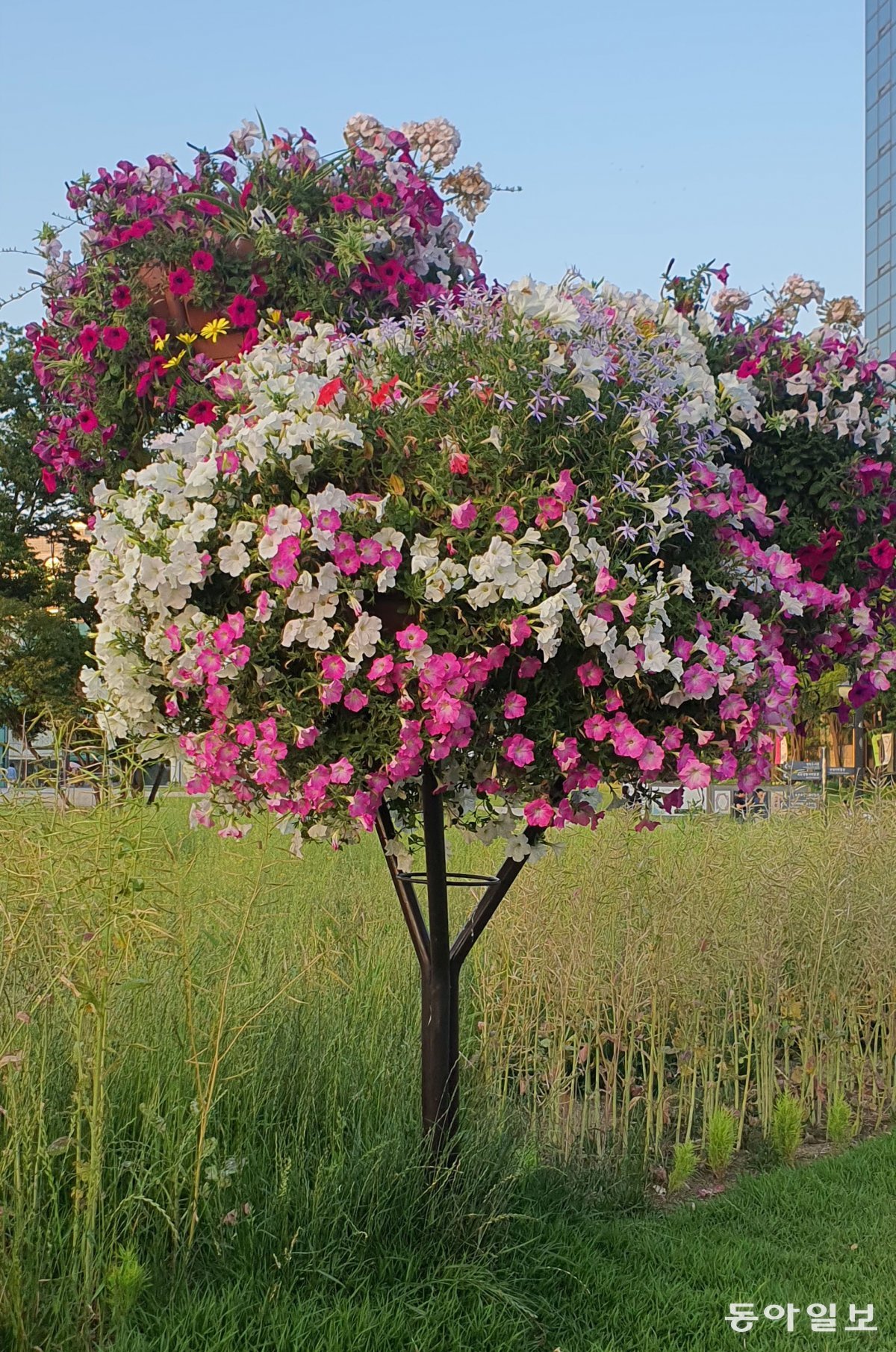 낮은 곳에 피던 꽃들이 예술가의 손을 거쳐 꽃나무로 변신했습니다. 높은 곳에 서니 새 세상이 보이네요.―서울 열린송현공원에서변영욱 기자 cut@donga.com}