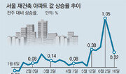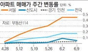 대출 규제 등 부동산 대책이 예고됐지만 서울 아파트 매매시장은 여전히 강세를 이어갔다. 다만 규제가 집중될 것으로 보이는 서울 강남권은 재건축 아파트를 중심으로 급등세가 한풀 꺾였다. 11일 부동산114에 따르면 지난주 서울 아파트 매매가격은 전주와 마찬가지로 0.45% 상승했다. 일반 아파트가 0.22% 올라 전주(0.33%)보다 상승폭이 커졌다. 저가 매물, 소형 아파트를 중심으로 매수세가 이어졌다. 반면 재건축 아파트는 0.71% 올라 전주(1.05%)보다 상승세가 둔화됐다. 강동(1.23%) 강남(0.44%) 서초(0.54%) 등 강남 3구의 상승세가 전주보다 일제히 꺾였다. 수도권 신도시(0.05%)도 오름폭이 줄었다. 분당(0.14%) 일산(0.11%) 산본(0.11%) 등이 주로 올랐고 경기·인천(0.03%)은 전주와 같았다. 전세금은 서울이 0.14% 상승했다. 둔촌주공 이주를 앞둔 강동구(0.75%)가 가장 많이 올랐다. 신도시는 0.03%, 경기·인천은 0.02% 소폭 상승했다.정임수 기자 imsoo@donga.com}