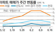 이번 정부의 첫 부동산 대책 발표가 초읽기에 들어가면서 서울 아파트값 상승세가 한풀 꺾였다. 18일 부동산114에 따르면 지난주 서울 아파트 매매가는 0.32% 올라 전주(0.45%)에 비해 상승폭이 둔화됐다. 특히 재건축 아파트 상승률이 전주 0.71%에서 0.32%로 절반 이하로 꺾였다. 일반 아파트(0.32%)도 전주(0.40%)보다 상승폭이 축소됐다. 지난주부터 시작된 정부의 합동 단속에 강남권 등의 중개업소가 상당수 문을 닫으면서 거래가 끊겼고 호가도 조정됐다. 구별로는 정부 규제를 피할 것으로 예상되는 노원구(0.94%)가 가장 많이 올랐다. 이어 마포(0.59%) 광진 양천구(이상 0.53%) 등의 순이었다. 수도권 신도시(0.05%)는 분당(0.12%) 일산(0.10%) 등이 오른 반면 새 아파트 입주가 많은 위례(―0.06%) 동탄(―0.05%) 등은 약세를 보였다. 전세시장은 서울(0.09%) 신도시(0.00%) 등이 대체로 안정세를 보였다. 서울에선 재건축을 추진 중인 둔촌주공 이주의 여파로 강동구(0.40%)의 전세금이 가장 많이 올랐다.정임수 기자 imsoo@donga.com}