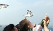 갈매기의 힘찬 날갯짓. 목표는 바로 손가락 끝 새우 과자입니다. 과연 아이가 흔들고 있는 과자를 낚아챌 수 있을까요. 추억을 만들어주고 싶은 아빠와 갈매기의 꿈, 서로 좋은 날입니다. ―제주에서 최혁중 기자 sajinman@donga.com}
