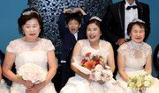 미처 혼인식을 못 하고 살아온 분들이 의외로 주변에 많다. 젊은 시절 생활의 어려움으로 예식을 올릴만큼 여유가 없었기 때문이다. 사단법인 종로구효행본부가 이런 어르신들을 위해 ‘늦깎이 결혼식’을 준비했다. 15일 성균관컨벤션 웨딩홀에서 열린 ‘제4회 어르신 꽃피는 웨딩쇼’. 비록 얼굴엔 주름살이 있지만 노년의 신랑 신부들은 저마다의 맵시를 뽐냈다. 턱시도와 웨딩드레스, 장소는 웨딩홀이 빌려줬고 종로구 이·미용 자원봉사자들이 화장과 머리를 담당했다. 종로구는 이 합동 결혼식을 위해 지난 9월 참여를 희망하는 관내 거주 65세 이상 저소득 어르신들의 신청을 받았으며 부부 6커플, 홀몸 어르신 7명(여성 5명, 남성 2명) 등 총 19명이 행사에 참여했다. ‘결혼 행진’과 기념촬영을 하며 활짝 웃었다. 홀몸 어르신들은 종로구효행본부 이사들이 신랑 또는 신부 역할을 맡아 어르신과 함께 입장했다. 최혁중 기자 sajinman@donga.com}